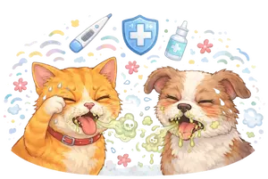 Persistent cat coughing and wheezing or dog gagging may indicate infections, kennel cough, or chronic respiratory conditions.